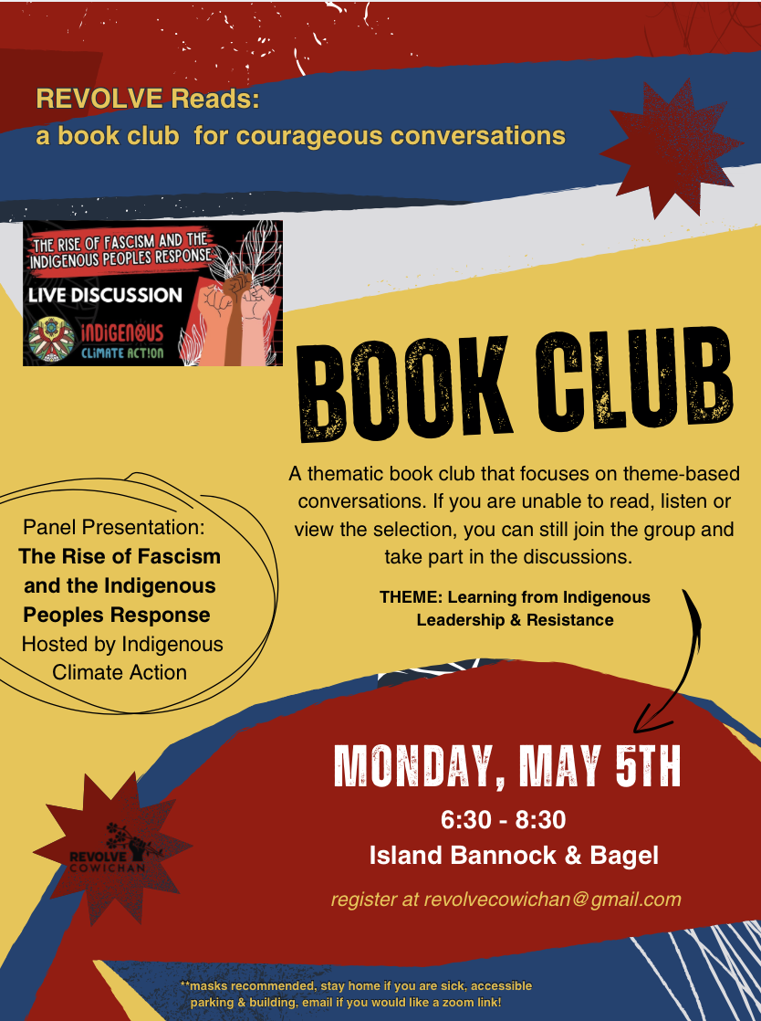 Looking forward to our conversation about Indigenous and Eurosettler shared histories, Residential School survival and the recent rise of racism in the Cowichan Valley.